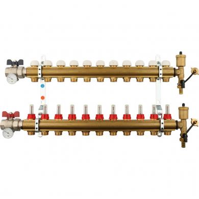 Комплектация2 заглушки, 2 воздухоотводчика, 2 сливных крана, 2 шаровых крана с термометром